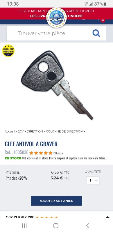 Et si tu veux une cle "look origine", les revendeurs de pieces ont des cles vierges a faire decouper