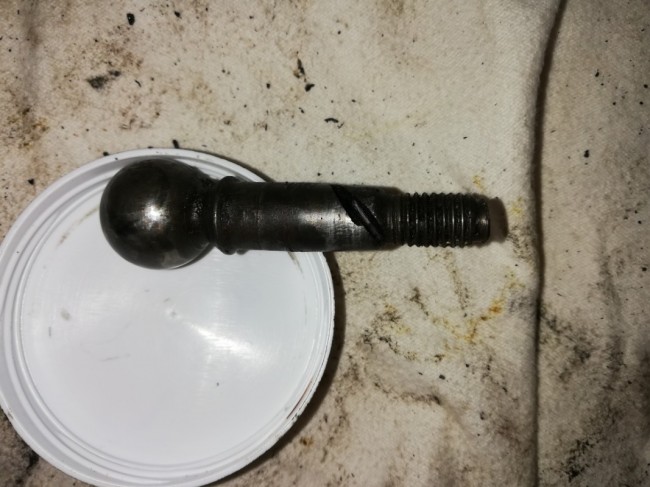 Qu'elle n'a pas été ma surprise lors du démontage des rotules de voir l'état de la rotule gauche § Juger par vous même : Je pense que celui qui a fait ça a voulu sortir la barre de direction et n'ayant pas d'extracteur , a utilisé la meuleuse !