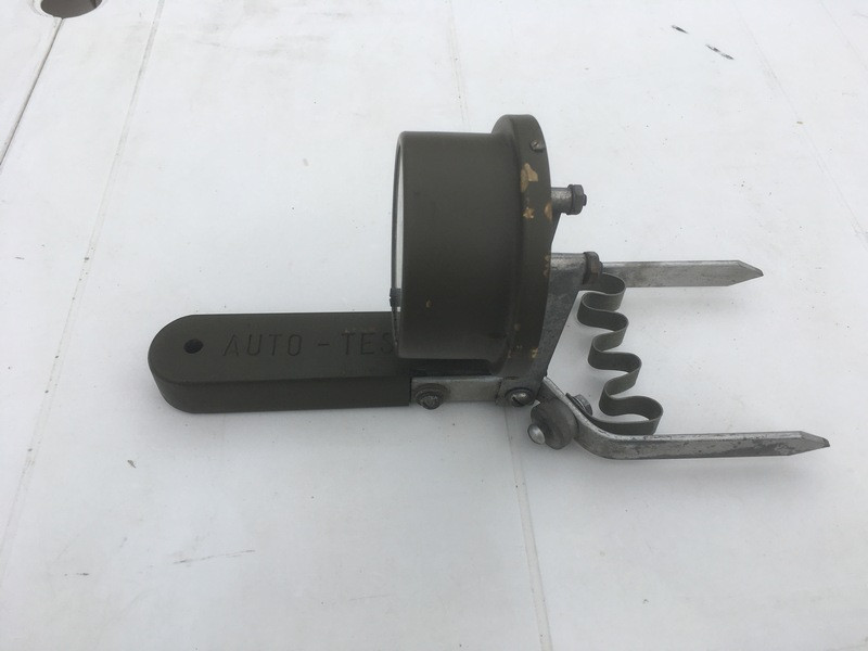 Le second, peint en Kaki US Army, je l'ai avec sa boite et sa notice. Il ne peut tester qu'un élément d'accu avec ses deux pointes fixes. En fait c'est un volmètre qui mesure la tension au bord d'une résistance dans laquelle circule un courant de 200 A.
