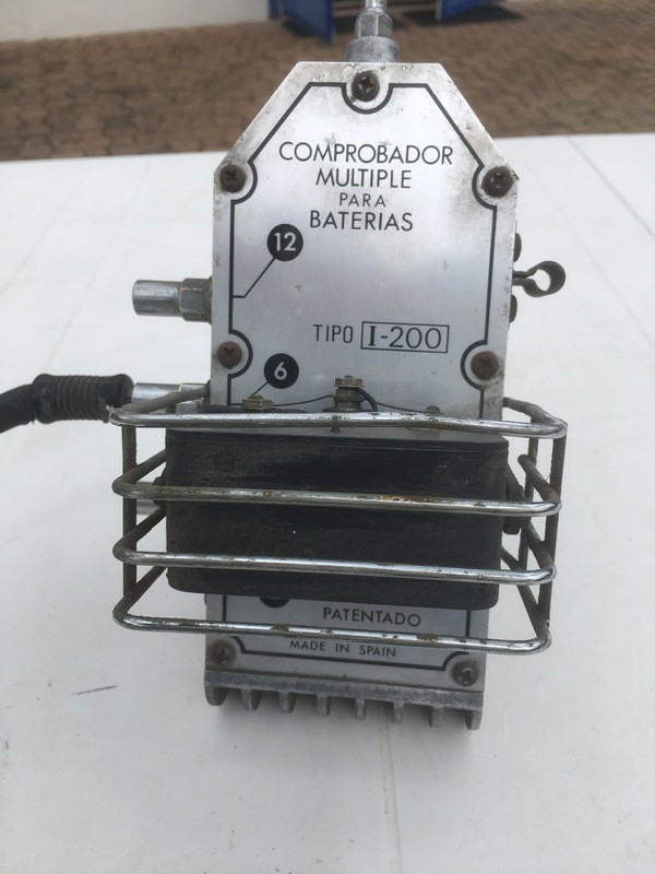 Le premier, de fabrication espagnole. Deux pointes à poser sur les plots en plomb des accus. Une position 2V. pour un élément, 6V. pour 3 et 12 V. pour 6.