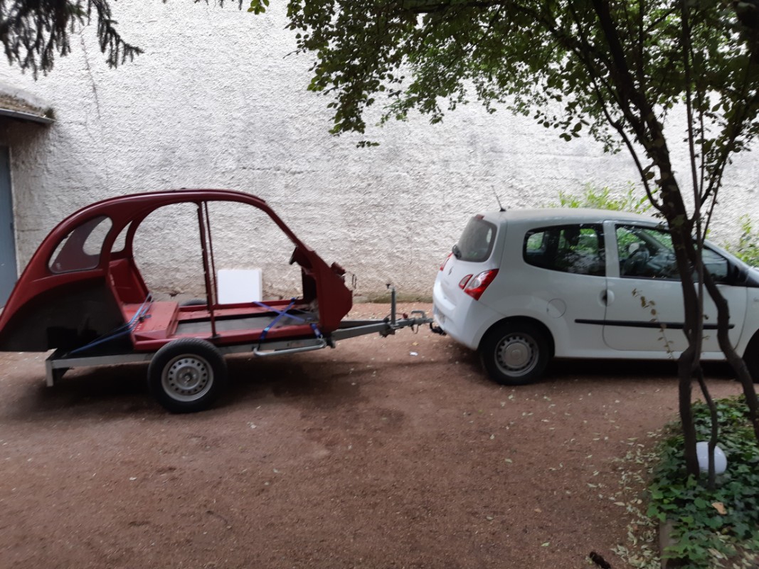 Départ de la caisse pour son stockage provisoire, sinon je n'ai plus de place dans le garage.