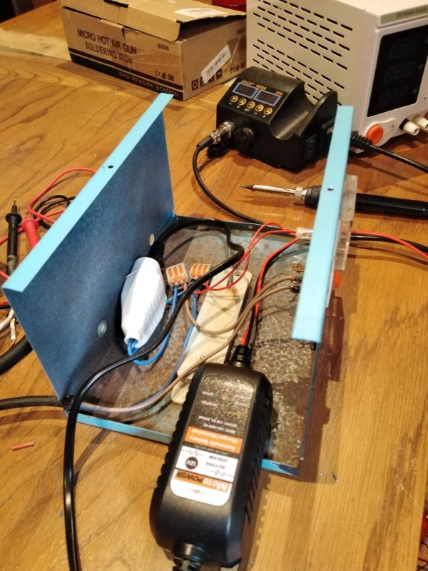 Par ces temps pluvieux, on se croirait en Irlande, j’ai modifié un ancien chargeur de batterie en panne, en un moderne. Voir photo.