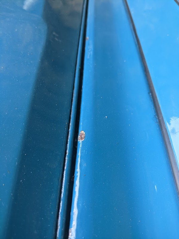 Sur la première photo, on voit que l'eau à stagner sous la charnière de capot, ce qui a fini par percer. Je pensais que l'eau pouvait passer par là, mais se point se situant en dessous des endroits où j'ai repéré les fuites, je pense que ça viens d'ailleurs. Je vais également étanchéifier cet endroit.