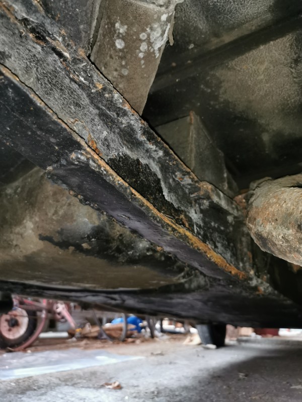 En ce qui concerne le chassis mon garagiste local m'a assure qu'elle ne passerait jamais le NCT (equivalent controle technique) avec un truc pareil. Je crois que j'ai quelques photos (surement davantage au moment du remplacement) et on voit des reparations successives assez grossieres avec un peu de goudron (?) pour cacher le tout.