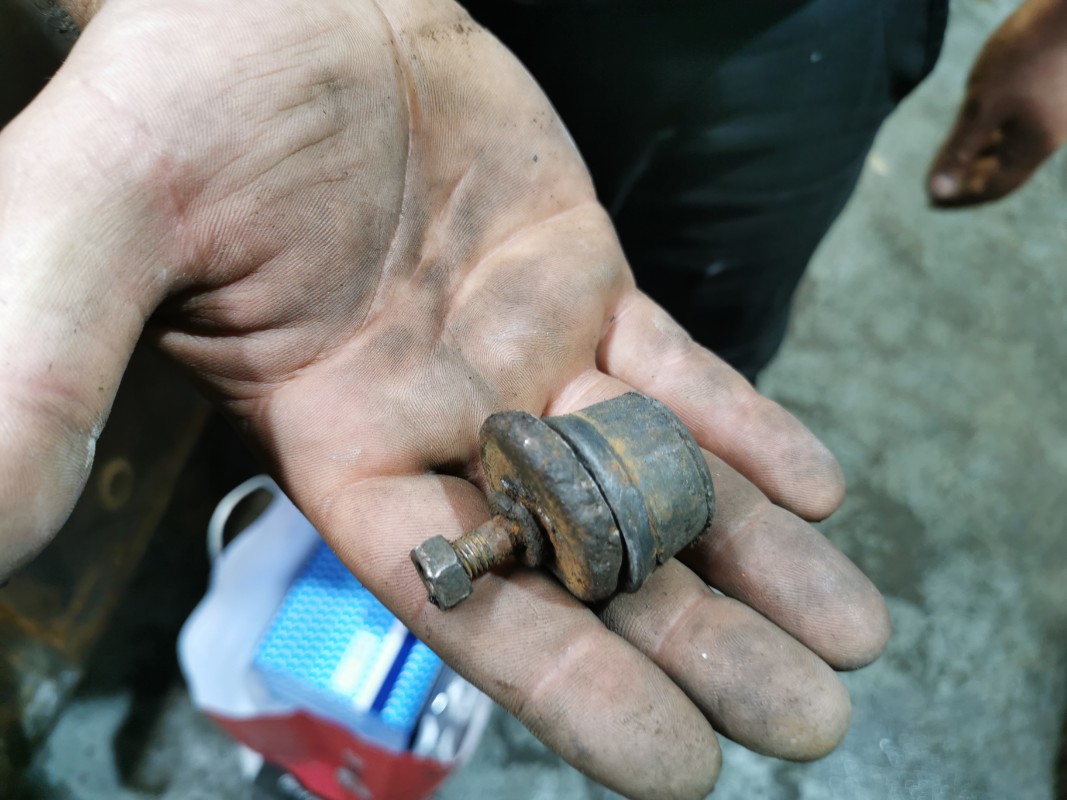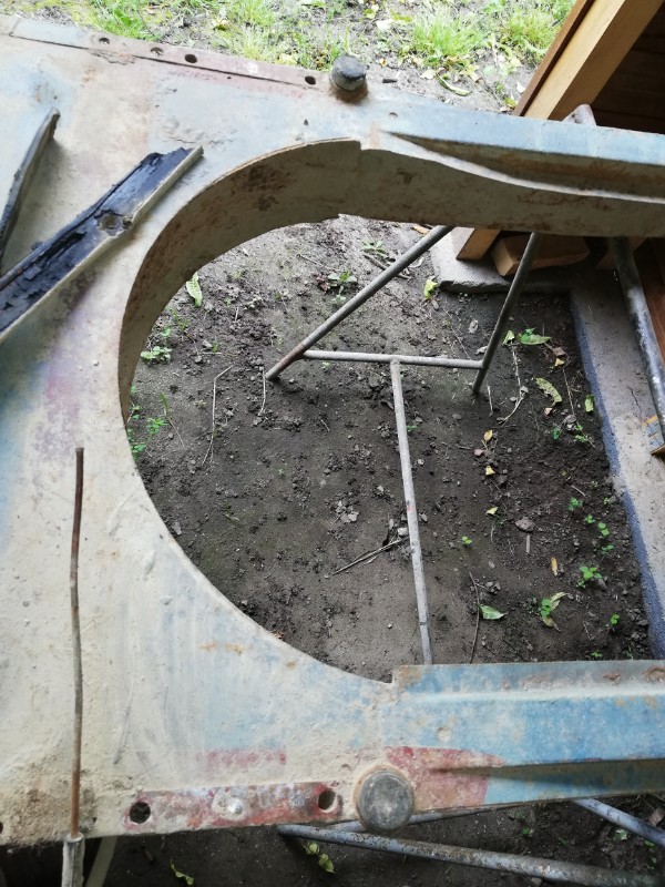 Là elle est juste posée dessus mais on voit un rond de rouille plus clair, et c'est de là qu'elle a été extraite à priori. Du châssis donc. C'est sensé être la ça ?