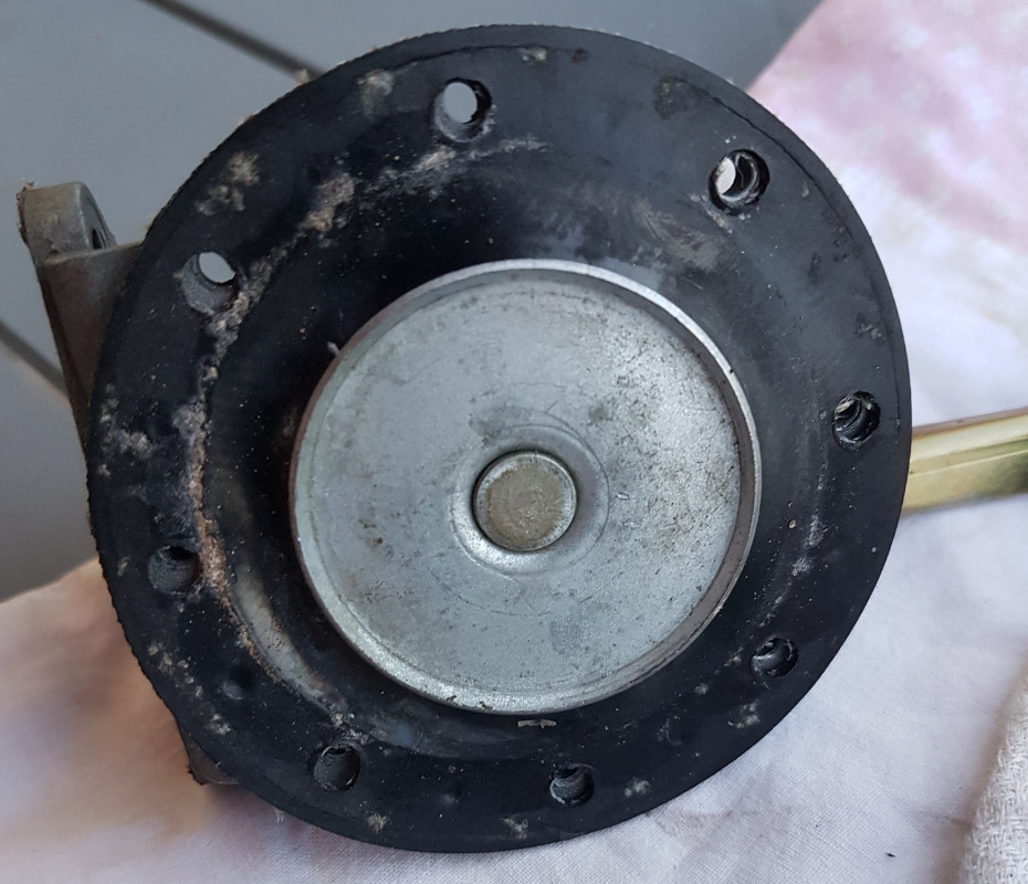 Or, depuis quelques temps je devais m'acharner de plus en plus sur le levier pour obtenir quelque chose. Et depuis aujourd'hui : plus rien. Je l'ai donc démontée (voir photos), et je ne vois rien de particulier. Il me semble que la membrane est OK, mais pourtant le constat est là : quand je pompe 20 fois d'affilée, une odeur d'essence se dégage, mais rien n'arrive, le filtre reste désespérément vide.