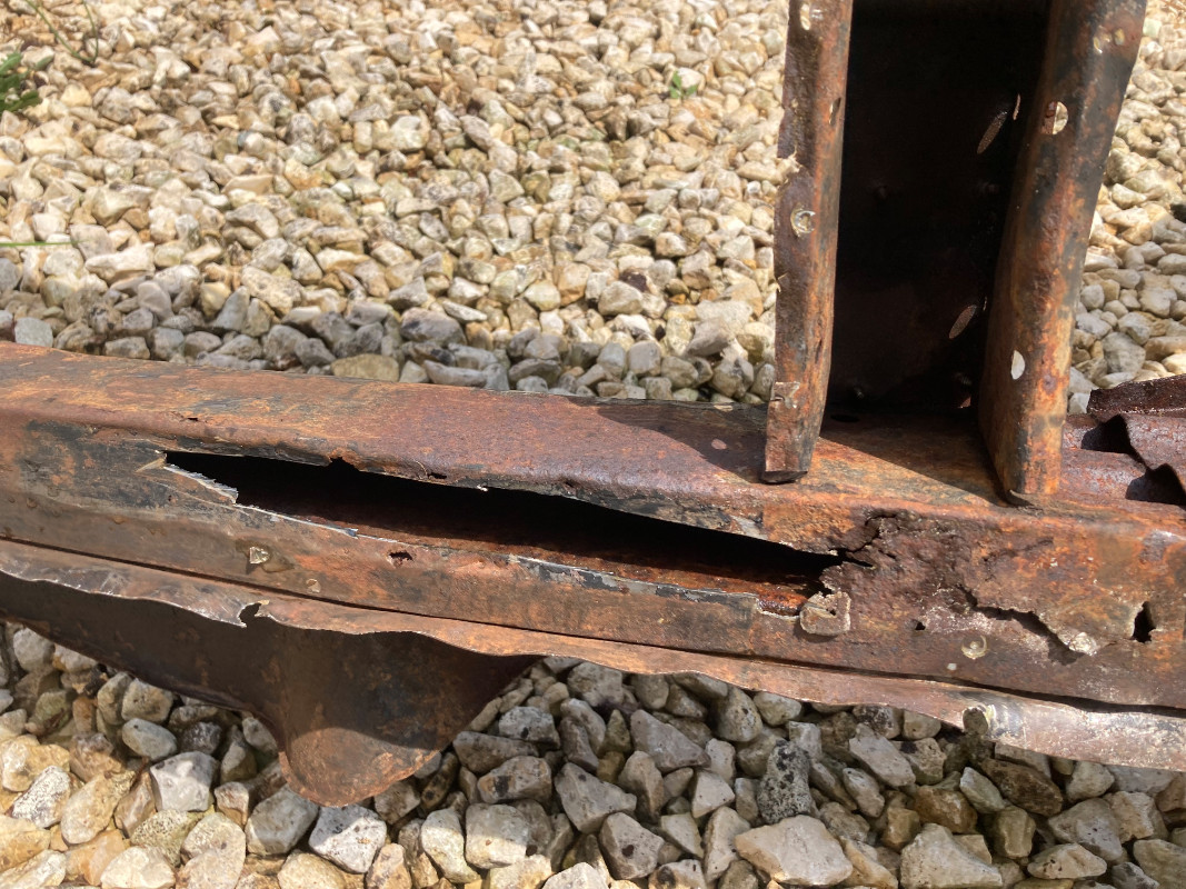 Bonjour, belle restauration a venir, pas mal de carrosserie a remplacer, Part contre le châssis est en très mauvais état, je pense qu'il est remplacer, car les pièces maîtresse sont gravement atteint par la corrosion