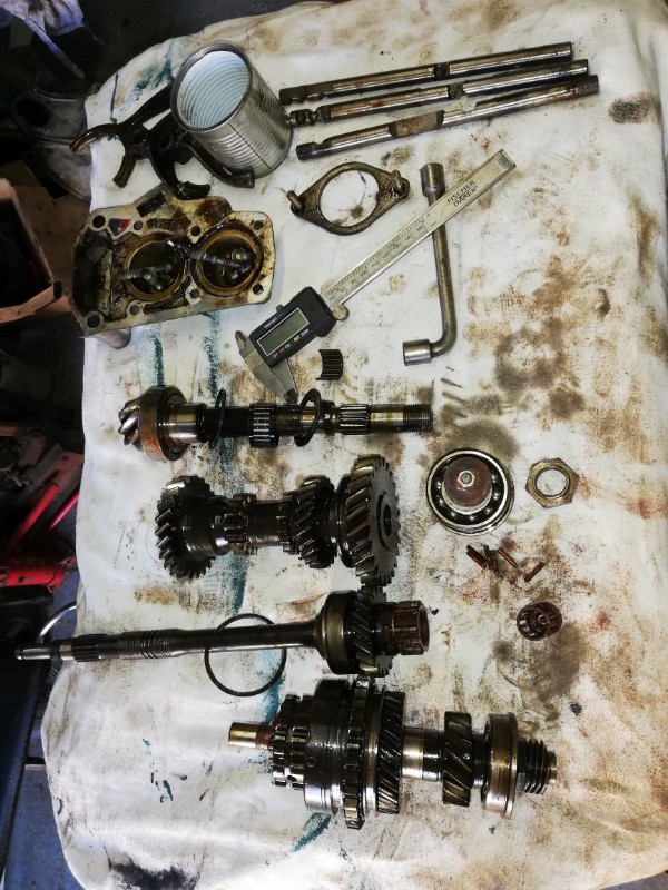 Donc j'ai démonté entièrement la boite de vitesse à cause du jeu entredent du différentiel que je trouvais excessif...J'ai aussi constaté que les écrous des arbres primaire et secondaire n'étaient pas du tout serrés alors que leurs couples de serrage se situent autour de 8 kg/m