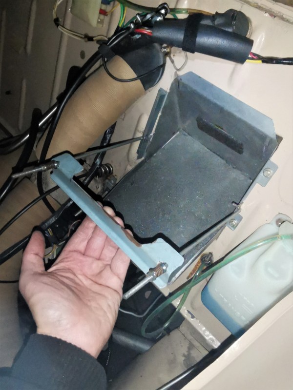 Une question m'amène, rien de bien grave : sur le bac à batterie de ma 2CV 6 Special de 1983, j'ai une des fixation de tirants de maintient de la batterie qui est en train de se déchirer.