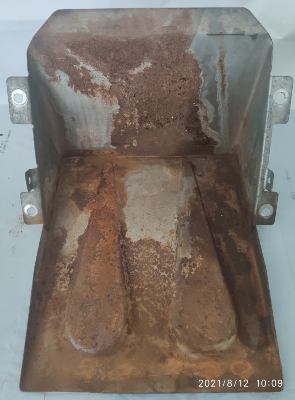 Comme ici, j'ai retiré ma batterie sur ma 2cv de 1983, et ai vu avec grande surprise que le bac de batterie est totalement rouillé :???: !