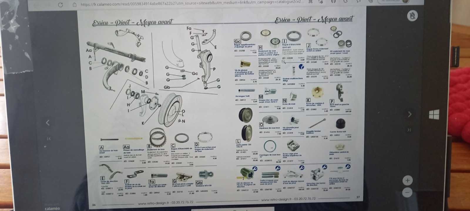 En prévision des réparations je dois me faire une idée des pièces à acheter et du coût.