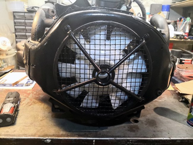 Ensuite, j'a retourner le moteur et j'ai remonté une hélice neuve sur la poulie de ventilation, et le tout sur le vilebrequin.