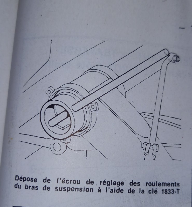 Bonjour, je confirme comme Lucky, j'ai démonté le bras arrière de ma 2cv6, ça va très bien, une fois le cache plastique enlever retirer la goupille et avec un gros tournevis plat on tape doucement sur les crans ça tourne facilement a cause de la graisse qui a protéger contre la rouille