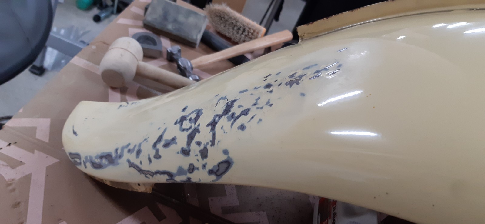 Le débosselage est presque terminé (c'est Lonnnnnggggg !). Demain, je tente le sablage si je peux !!!