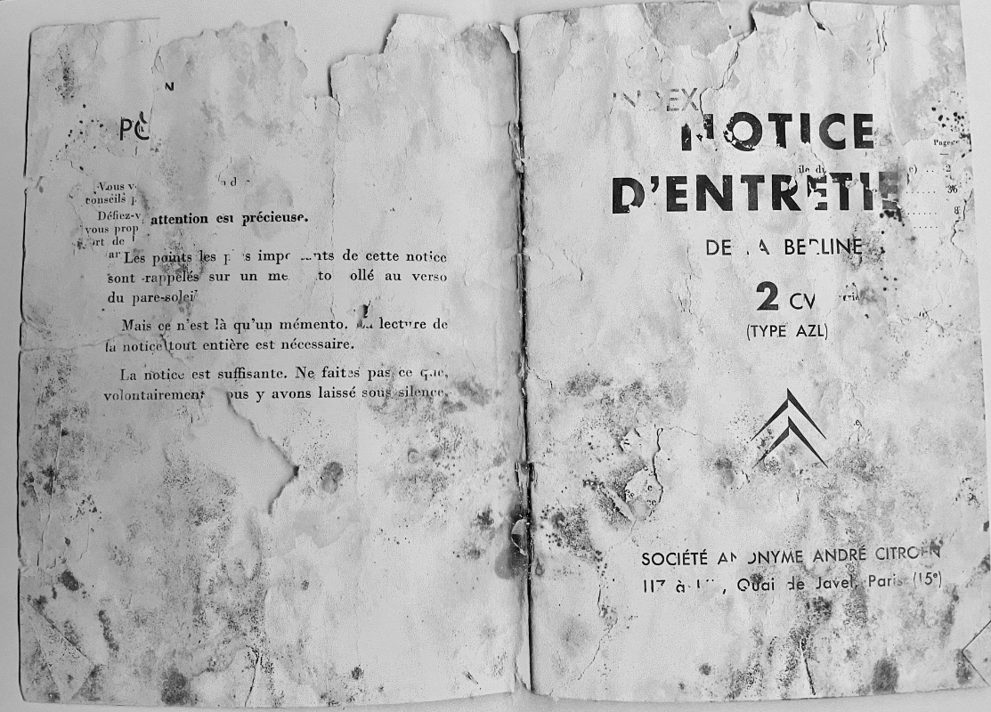 Et aussi pour le fun, la notice technique qui était fourni avec la 2cv 57 , il est sous forme de parchemin .... Un vrai grimoire tout humide et champignolesque... :siffle: