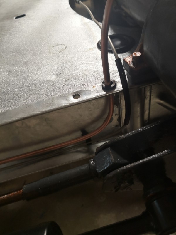 Pour le tuyaux de frein, il n'y a pas de trous, il passe à coté du châssis, entre ce dernier et le bras de suspension.