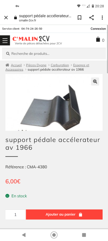 Pédale d'accélérateur et son support qui ne correspondent pas sur ma 2CV