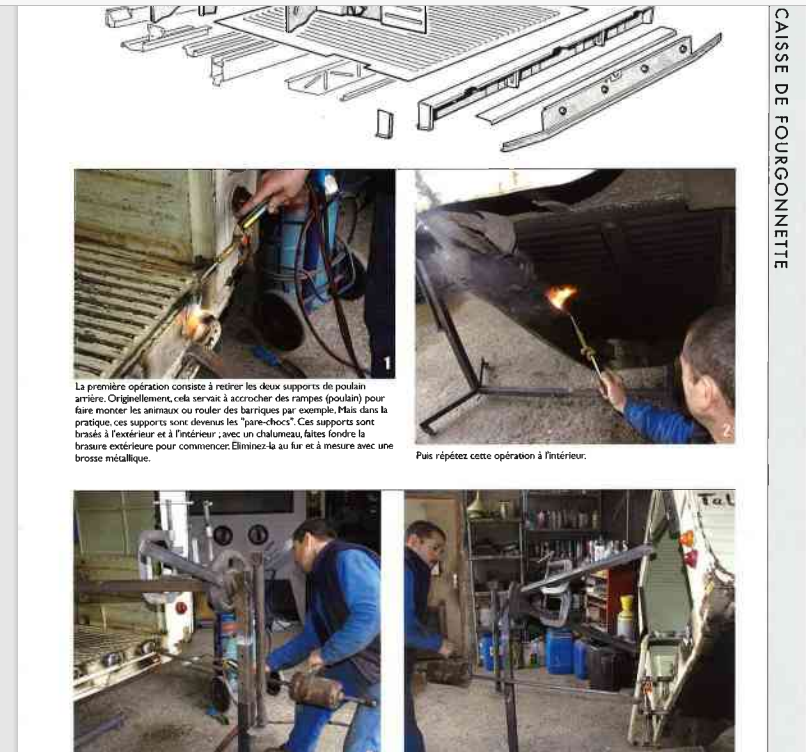 Sur les fourgonnettes AK 400, le pare choc arrière, qui s'appelle exactement le support de poulain, est maintenu par des brasures intérieures et extérieures au niveau des tubes de guidage situés dans le panneau arrière :
