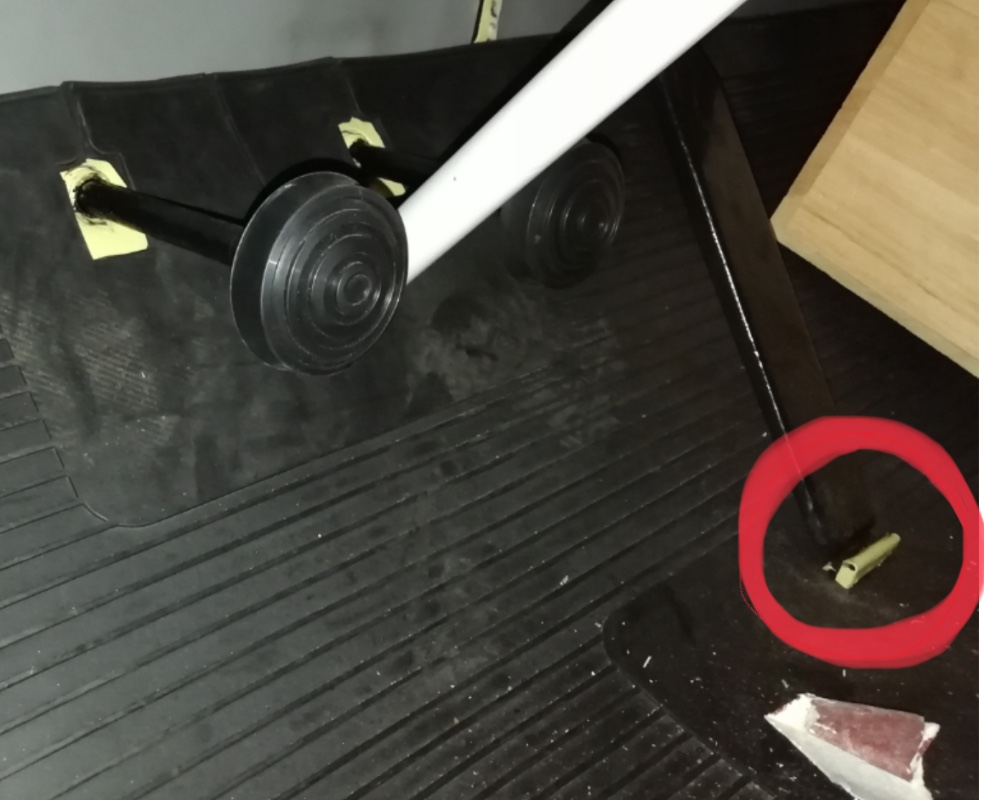 … ou tu surélèves légèrement le tapis pour que la pedale rentre en forçant un peu…