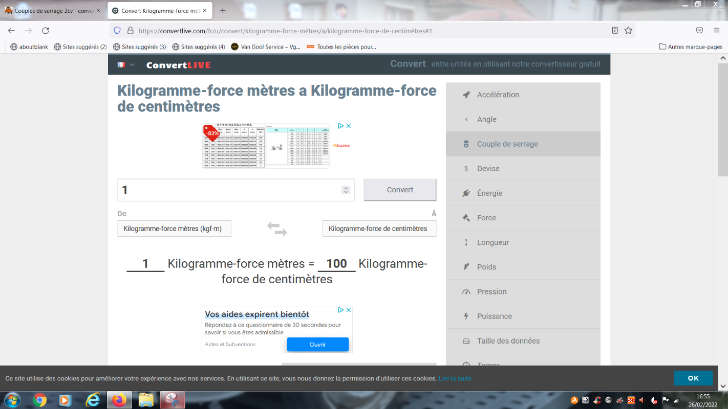 Couples de serrage 2cv - conversions N.m, lbf.ft, lbf.in et Kg.cm