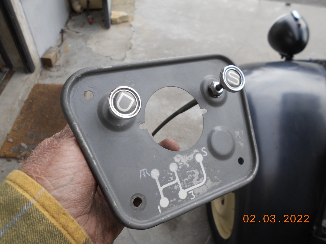 Du coup j'ai remis une jolie plaque de la bonne couleur avec le petit logo expliquant le fonctionnement de la boite de vitesses.