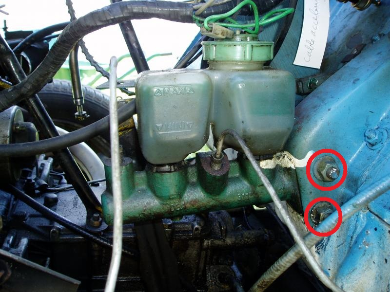Les 4 boulons de fixation du maitre-cylindre sur le tablier...