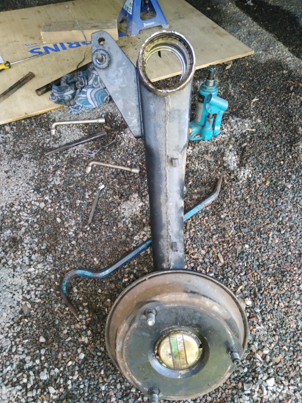 Tu n'as pas besoin d'aller jusqu'à enlever l'essieux, c'est uniquement le tuyaux de frein qui va te gêner et qu'il faudra enlever.