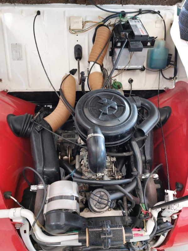 Le châssis est galva, "blaxonnée", capote neuve, sellerie neuve, pneus neufs, tapis de sol neufs, moteur remis à neuf, peinture refaite aux couleurs d'origine, etc.