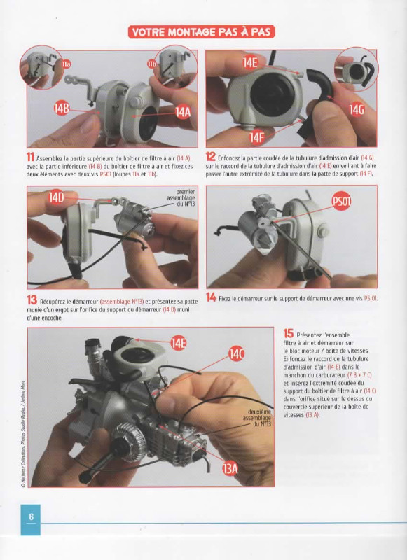 Le carbu et le reniflard d'huile. La pièce n° 7E (Collecteur d'admission et d'échappement) n'étant pas de la bonne couleur (métal), Hachette en a rajouté une de couleur noire. Je n'ai aucune photo du montage terminé.