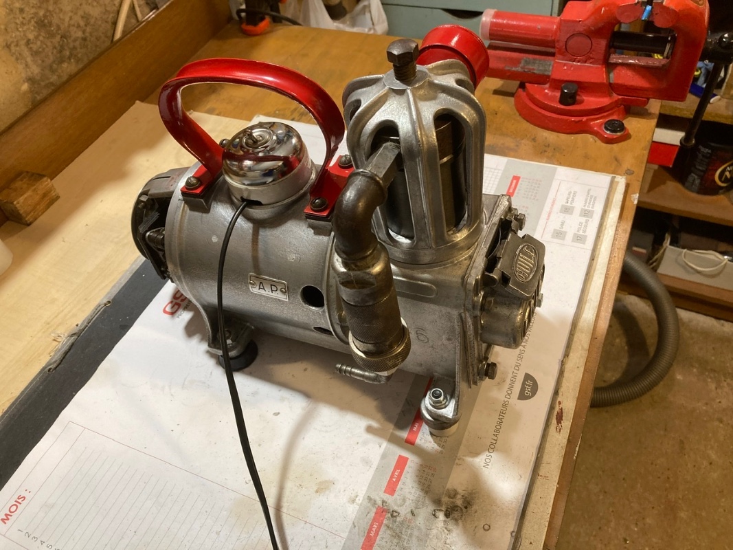 Coïncidence ! Je suis justement en train de briquer celui-ci que je tiens de mon grand père, il s'en servait pour gonfler les pneus de tracteur, faut juste pas être pressé 🤗. C'est vrai que lui adjoindre une petite cuve tampon n'est pas une mauvaise idée, d'ailleurs j'y pense ...