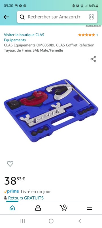 CLAS Equipements OM8050BL CLAS Coffret Refection Tuyaux de Freins SAE Male/Femelle https://www.amazon.fr/dp/B08CBJVW4H/ref ... UTF8&psc=1 Mais vu le prix est ce intéressant