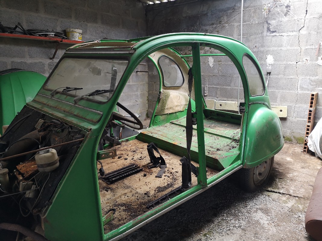 Restauration 2cv 4 de 1975 vert bambou