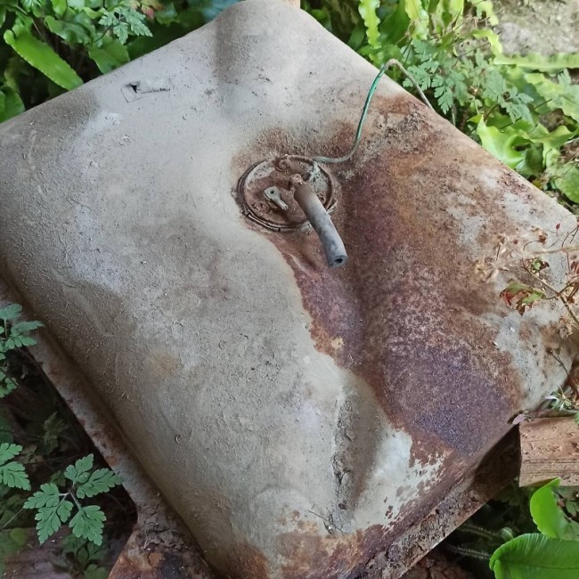 J'ai ensuite enlevé différents éléments : le réservoir plein d'essence mélangée à la rouille, le faisceau éléctrique (plus facile à enlever qu'à remettre), et les amortisseurs ( eux aussi ils ont bien vécu