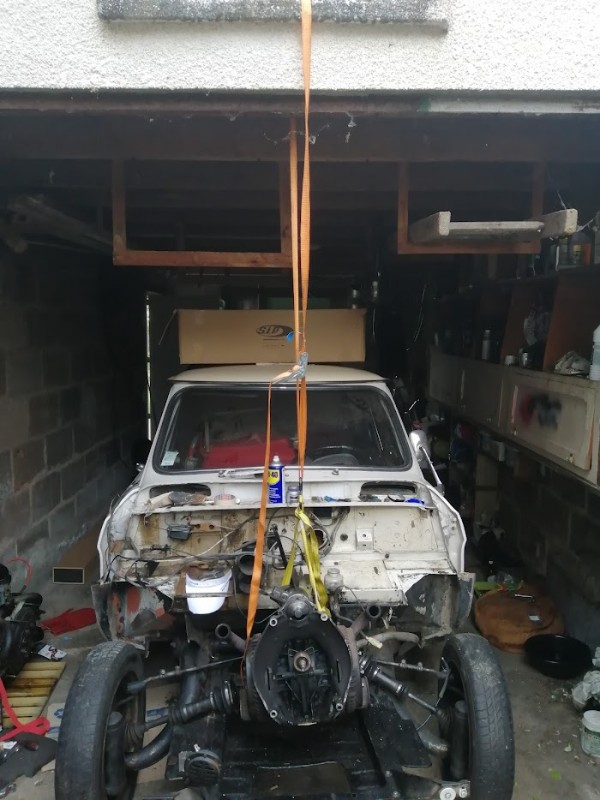 J'ai pas de chèvre ni de palan, mais j'ai passé une sangle à cliquet dans le linteau du garage pour la dépose, ca avait bien marché je vais refaire pareil :