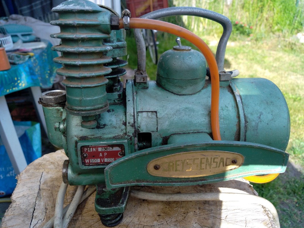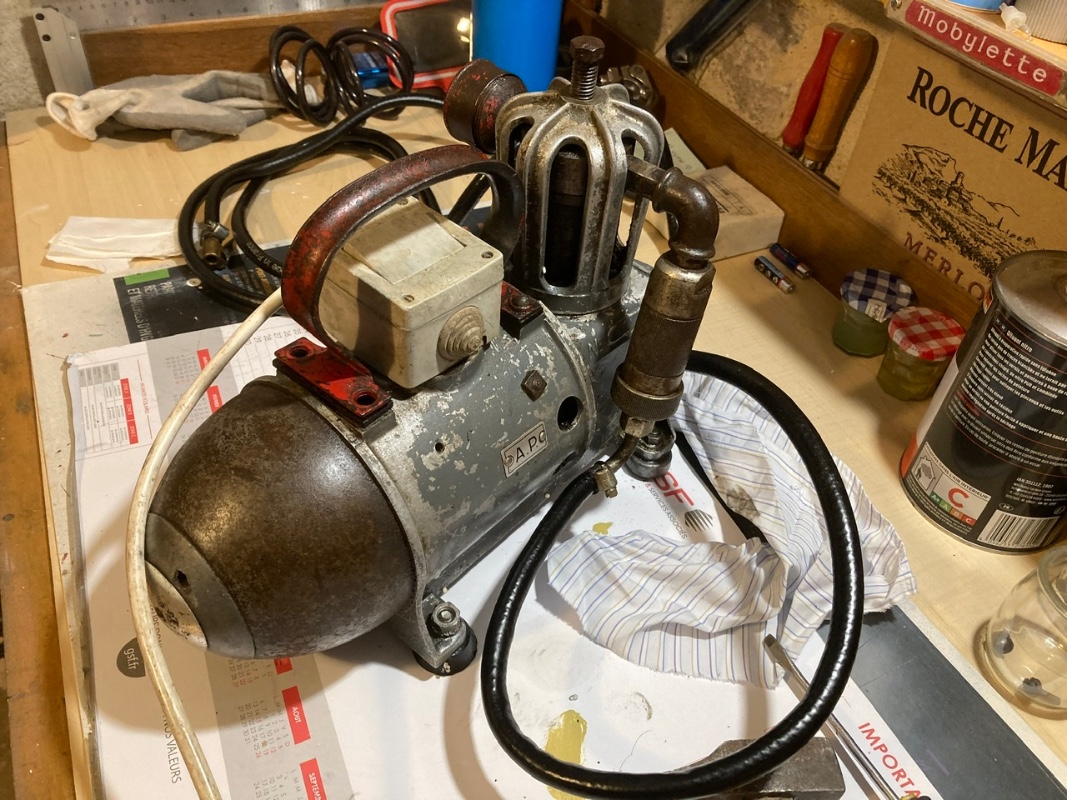Coïncidence ! Je suis justement en train de briquer celui-ci que je tiens de mon grand père, il s'en servait pour gonfler les pneus de tracteur, faut juste pas être pressé 🤗. C'est vrai que lui adjoindre une petite cuve tampon n'est pas une mauvaise idée, d'ailleurs j'y pense ...
