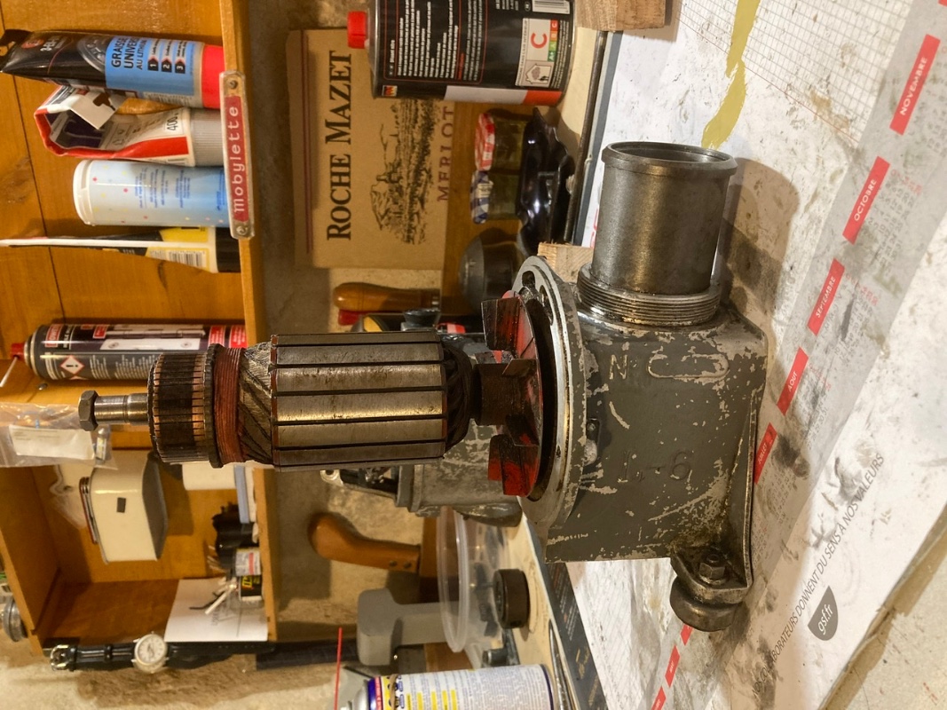 Bien joli, mais qui mérite une belle reno dans les règles : démontage, nettoyage, changement des joints et roulements, peinture et remontage, avec remplacement de l’horrible interrupteur.