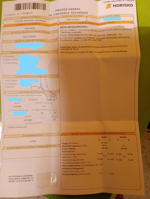Mon CT était correct, bien que moins bon que le tien et il y avait quelques (voir beaucoup ) de vices cachés mais bon c'est le risque quand on achète une ancienne et cela aussi dépend du prix payé.