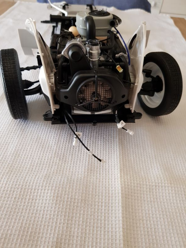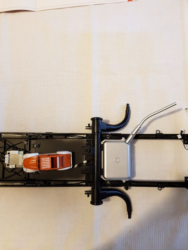 Suspension arrière et tube de remplissage du réservoir (ce dernier sera installé lors d'un prochain fascicule)