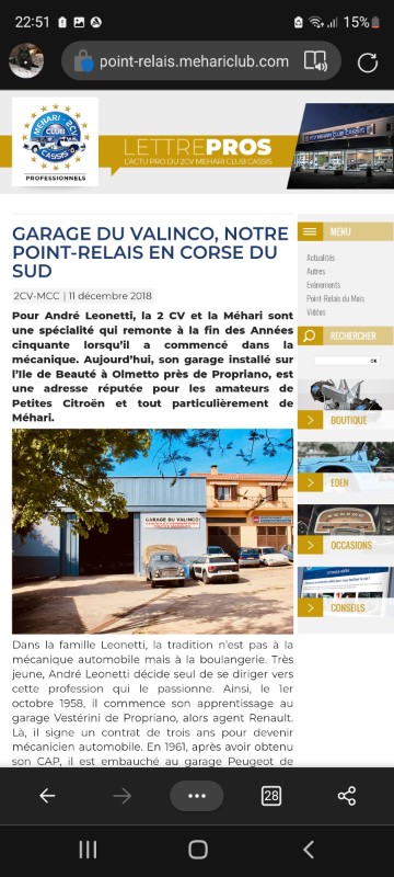 Il y a 4 garages qui semblent s'occuper des 2cv et qui sont affiliés au Mcc dont 3 en Corse du Sud.