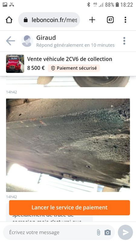 La spéculation va bon train .... A ce prix la vaudrait il pas mieux étendre votre recherche afin d'en trouver une au juste prix et même a ce prix en meilleur état car la les mecs ne ce sentent plus puis entre nous 2 cv 6 de collection cela annonce la couleur le mec croit vendre une rolls royce :enerve2: .