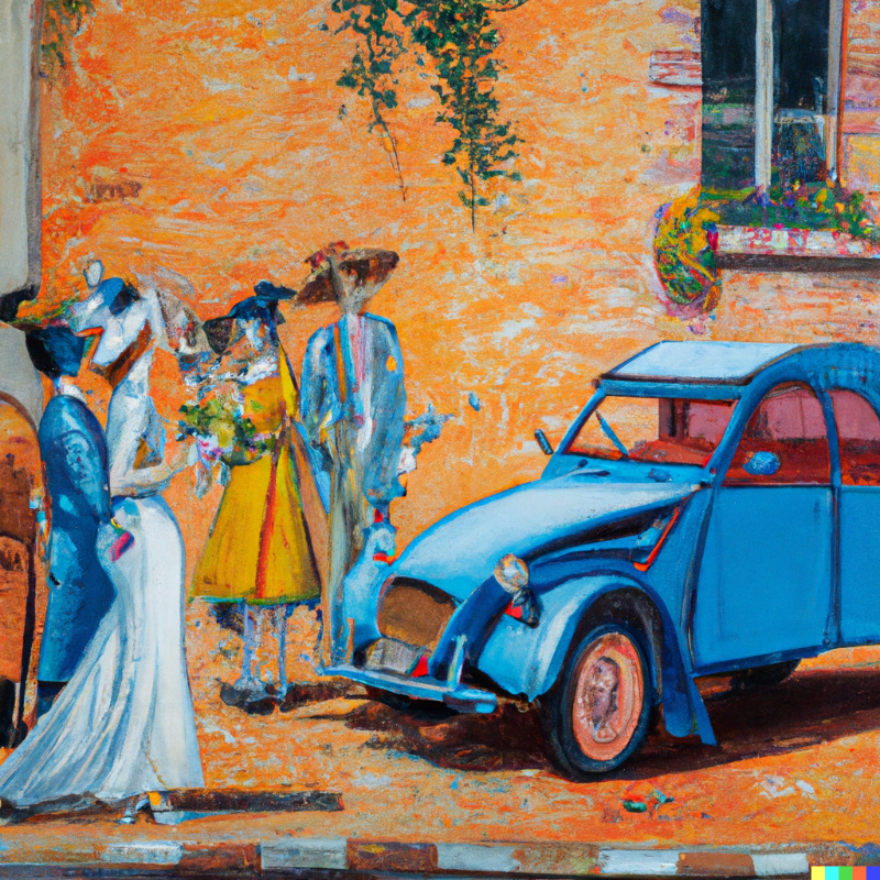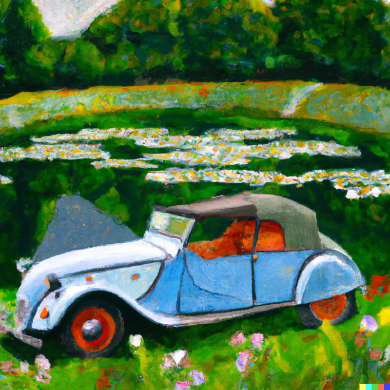 Peur du titre? Non vous ne verrez pas sur ce post les images (horribles) d’une 2CV passée au concasseur mais plutôt une 2CV passée dans la moulinette de l’intelligence artificielle. Quand l’intelligence artificielle et la 2CV se rencontrent, ça peut donner ça par exemple. Ma demande était: une 2CV Charleston peinte par Salvador Dali. Un des résultats est pas mal je trouve.