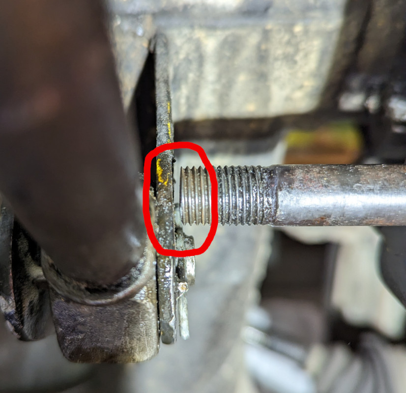 Je fignole à la lime plate et j'insère un ancien écrou pour vérifier que le filet n'est pas trop esquinté.