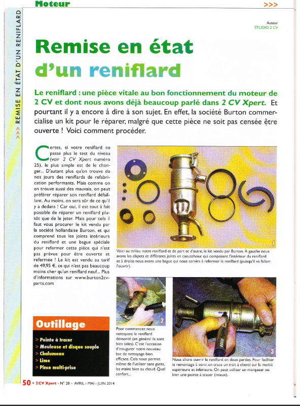 Bonjour, lundi je passe voir mon collègue au garage, pour tester mon reniflard, le neuf, pour voir si il est fonctionnel sinon je commande un kit de rénovation chez Burton, car ils vont augmenter leurs prix après le 30 Mars,