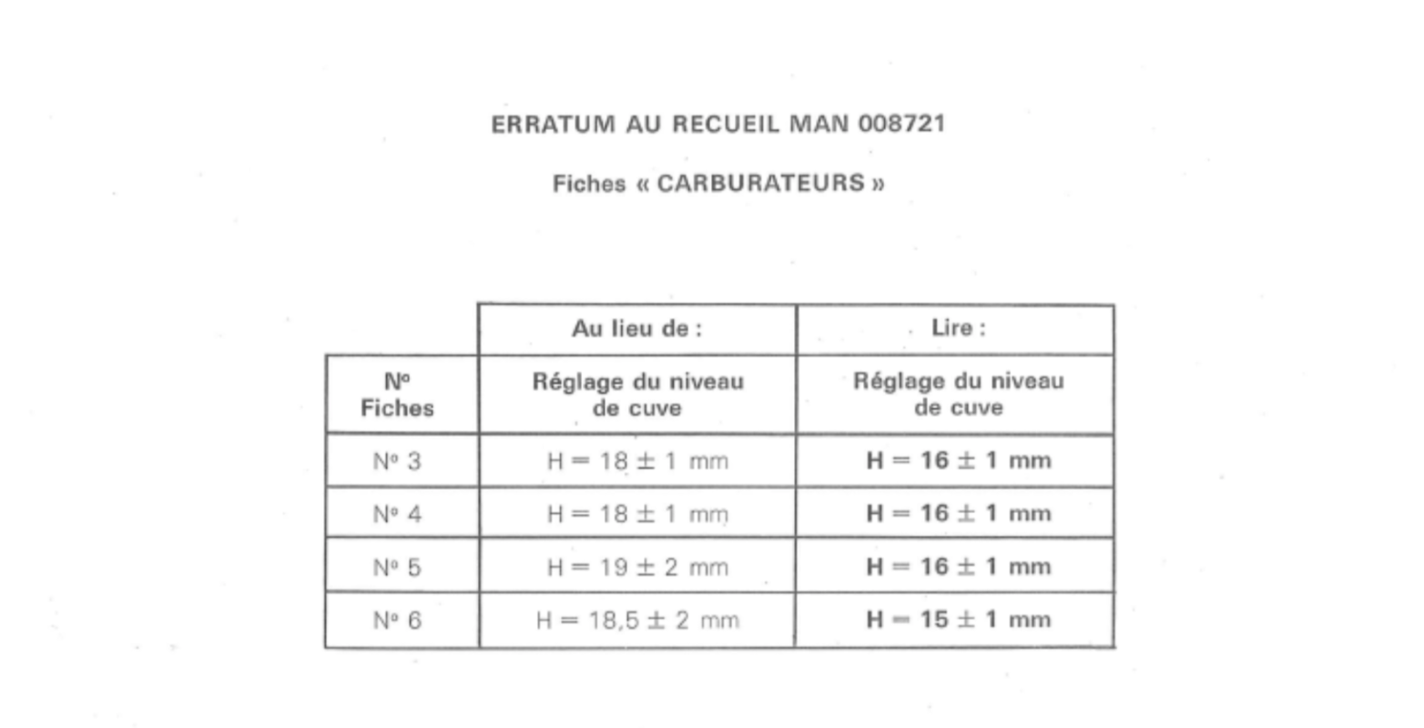 Sur la RT, aucune donnée n'est indiquée. Je suppose que la carburation est un peu trop riche et je souhaitais le remettre dans les clous, mais la boite à clous est vide ! ! !