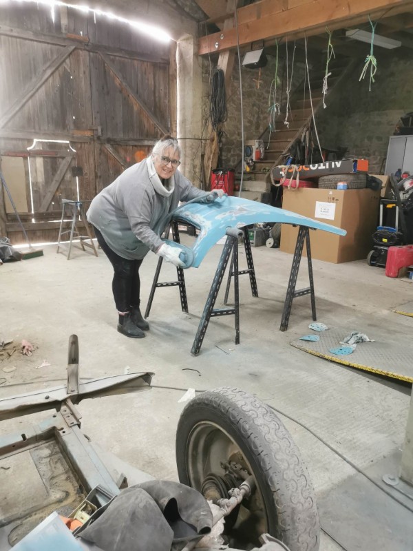 reste plus que les 2 ailes avant cabossé et sablage des intérieurs . le capot qui a un trou et un gros choc sous la plaque immatriculation . le volet d'air a refaire quelle petits trous .les 2 coques de phare . les joues d'ailes avant et âpres fini le bleu je vous met ca en photos suivant les étapes bien sur