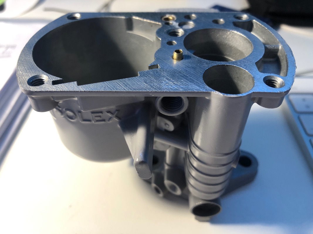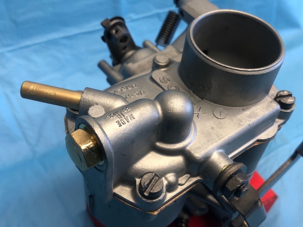 Ce carbu est inhabituel car c'est un 28 CBI (diamètre de la buse au niveau de la semelle), avec une buse de 22 (de fonderie sur le corps-cuve)