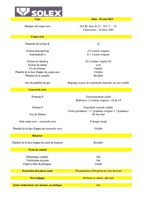 PS : c'est un corps-cuve spécial : il y a une erreur de la part de Solex !!! Rarissime ... Les photos, c'est tout à l'heure !