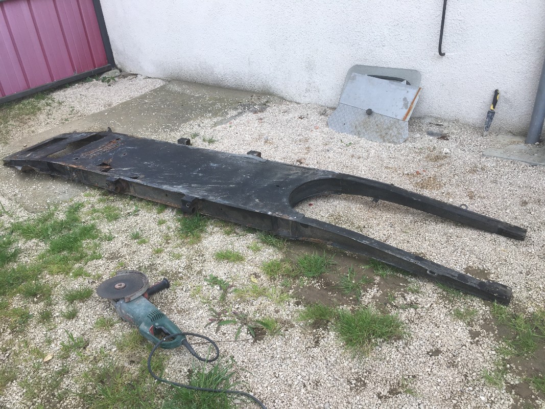 ca y est les trains sont séparés du châssis et celui-ci part vers le recyclage coupé en 3 dans la remorque