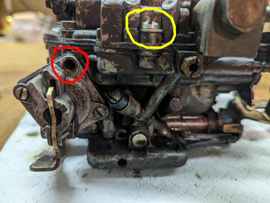 Je ne sais pas si c'est un trou "de travail" utilisé lors de la fabrication du carbu et qui a ensuite été bouché, ou bien si un fluide doit pouvoir y circuler.
