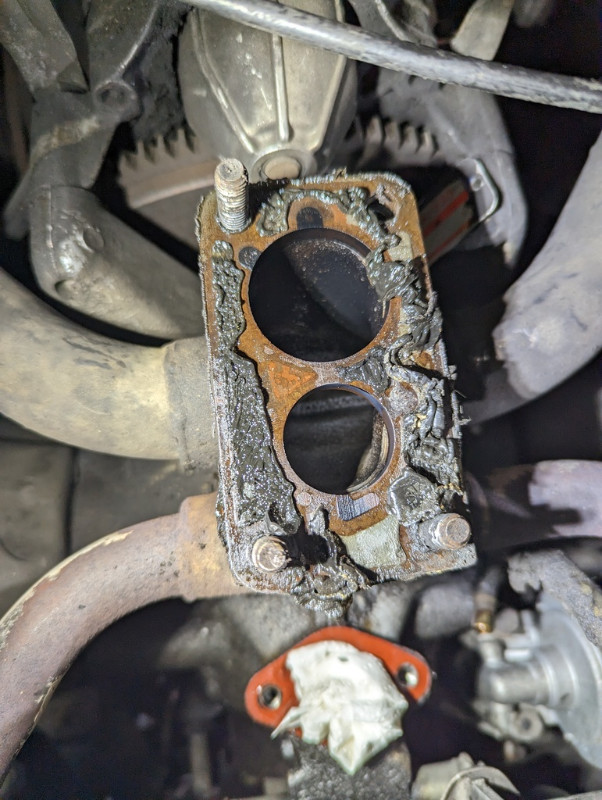 Notez aussi que le goujon en haut à droite sur la photo a préféré se dévisser plutôt que de laisser partir l'écrou.